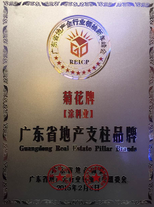 菊花牌漆在香港已经有八十余年历史,是广受欢迎的家居及建筑专用漆,于2001年度荣获香港名牌,2005年获得中国名牌。菊花牌之建筑漆产品系列齐全且品质优良,为客户提供一站式的油漆配套选择,产品广泛应用于香港及中国大陆的装修、建筑及维修工程项目,在商业住宅、酒店饭店、市政工程、以及火车站、机场等大型项目中得到广泛的应用。菊花牌的战略合作客户有碧桂园集团、雅居乐、招商地产、越秀地产、恒大地产集团等。菊花牌涂料一直坚持以高品质的产品服务客户,经过多年来市场的检验,是深受广大客户喜爱的涂料品牌。本次荣获“广东省地产支柱品牌”,是对菊花牌涂料高品质的认可和信赖。菊花牌涂料将一直秉承高品质的产品质量,以市场为导向,一如既往地服务广大客户。