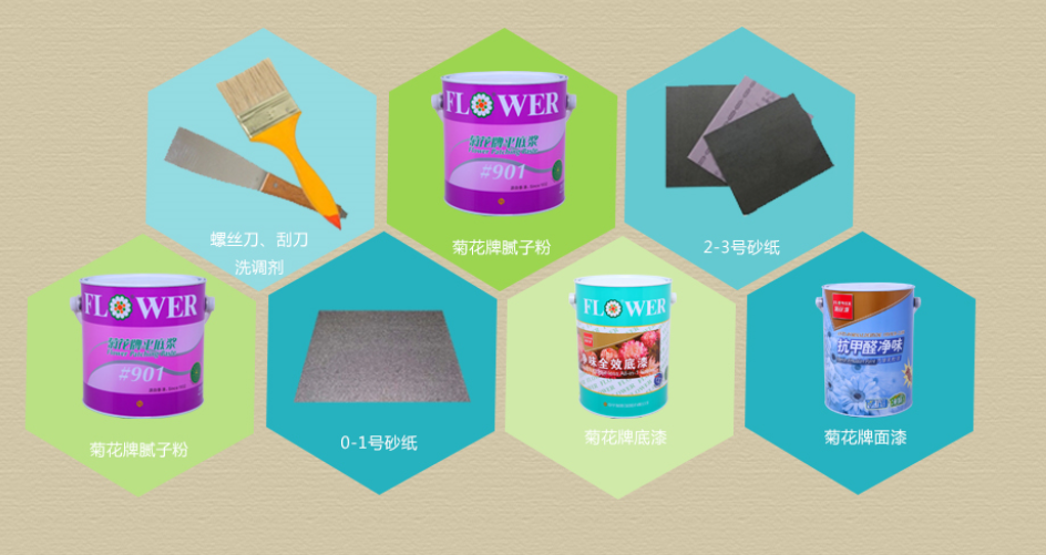 1、 除去墙面剥落松散的油漆或涂料、油灰、污点及尘埃;